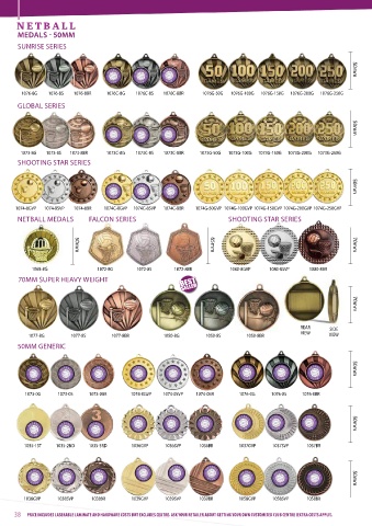 NETBALL MEDALS FALCON SERIES SHOOTING STAR SERIES