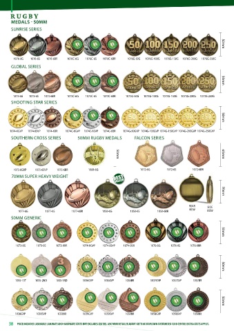SOUTHERN CROSS SERIES 50MM RUGBY MEDALS FALCON SERIES