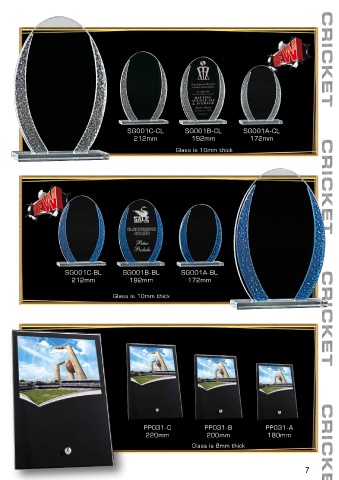 SG001C-CL SG001B-CL SG001A-CL CRICKET 212mm 192mm 172mm Glass is 10mm thick CRICKET SG001C-BL SG001B-BL SG001A-BL 212mm 192mm 172mm Glass is 10mm thick CRICKET PP031-C PP031-B PP031-A 220mm 200mm 180mm Glass is 8mm thick CRICKE 7