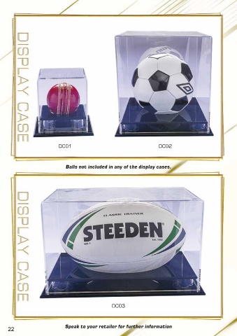 DC01 DC02 Balls not included in any of the display cases. DC03 22 Speak to your retailer for further information