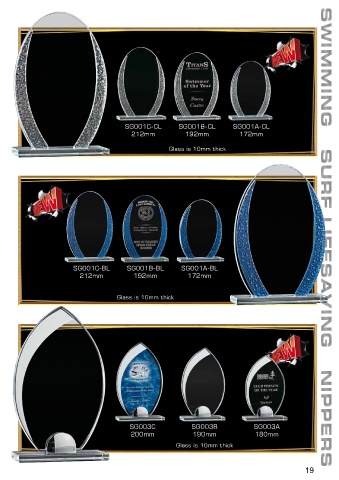 SG001C-CL SG001B-CL SG001A-CL SWIMMING 212mm 192mm 172mm Glass is 10mm thick SG001C-BL SG001B-BL SG001A-BL SURF LIFESAVING 212mm 192mm 172mm Glass is 10mm thick SG003C SG003B SG003A NIPPERS 200mm 190mm 180mm Glass is 10mm thick 19