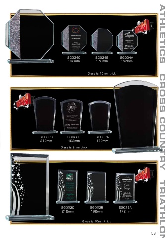 SG024C SG024B SG024A ATHLETICS 192mm 172mm 152mm Glass is 10mm thick SG022C SG022B SG022A CROSS COUNTRY 212mm 192mm 172mm Glass is 8mm thick SG023C SG023B SG023A 212mm 192mm 172mm TRIATHLON Glass is 10mm thick 53